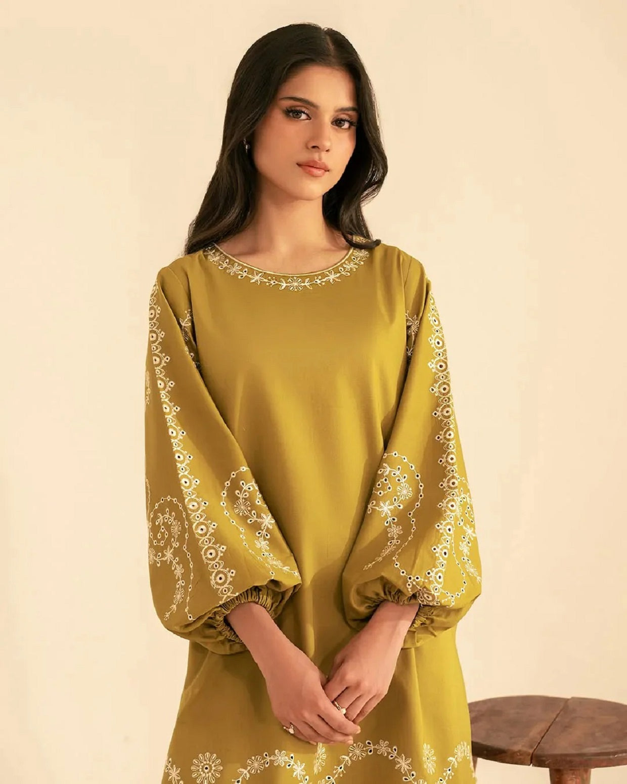 Embroidered Cotton ShirtHeavy Boring Embroidery sleeves Plain Trouser